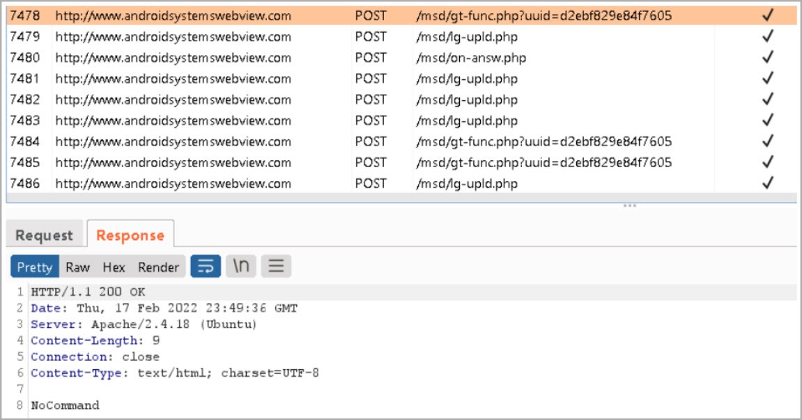 Aunque ha limitado el numero de permisos estos aun les permiten poder tomar control del móvil y robar información. Además, el malware puede recibir comandos para ejecutarse directamente desde su servidor de comando y control (C2), al que se contacta a través de una solicitud HTTP cada 10 segundos.