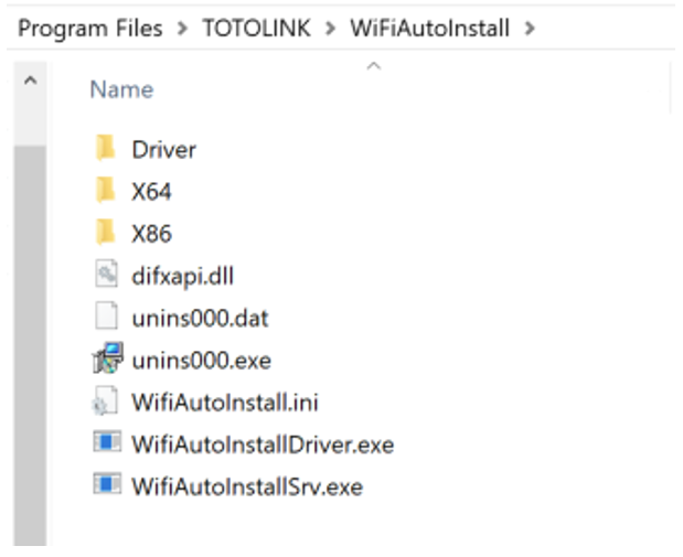 Tras completar el proceso de instalación y configuración, los archivos correspondientes se guardan en el disco duro, concretamente en la ruta C:\Program Files\TOTOLINK\WiFiAutoInstall.